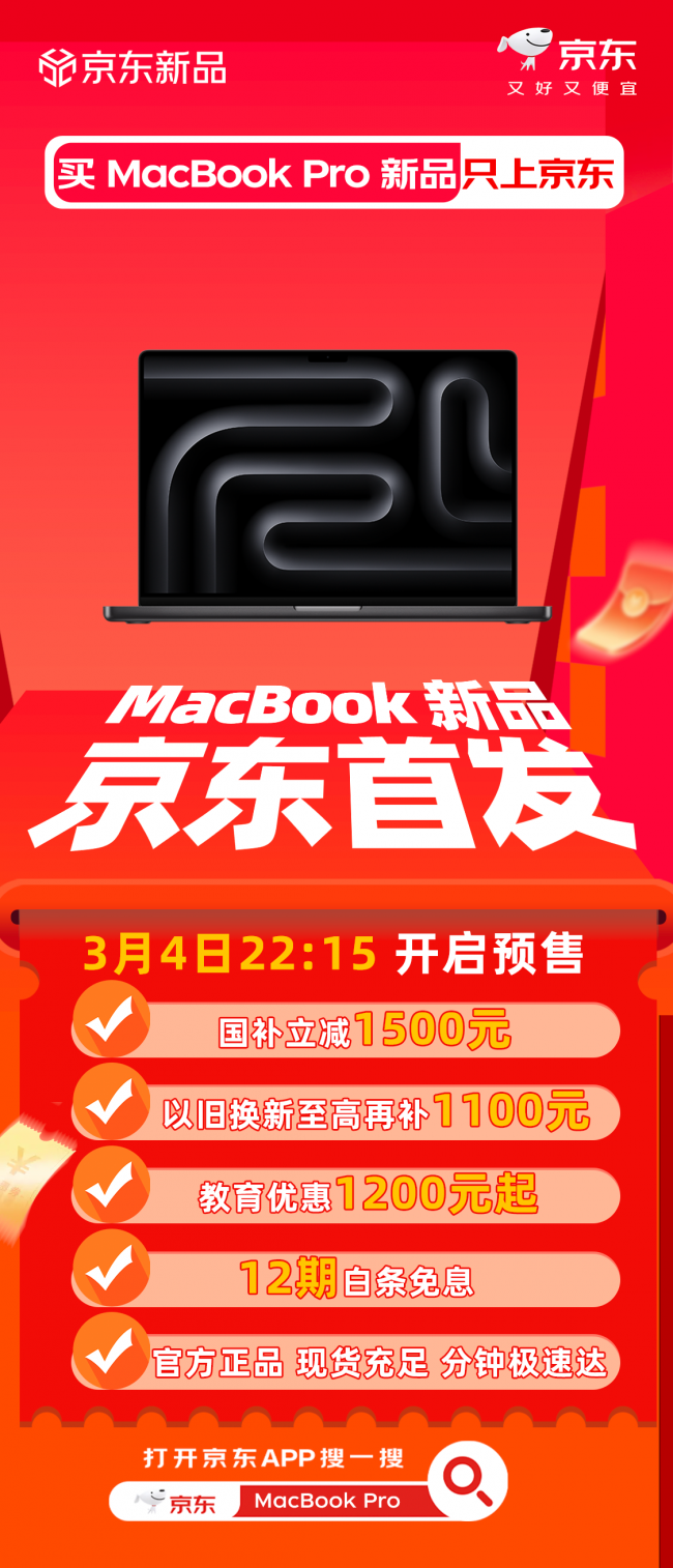 3月4日22点,2026新款MacBook Air与MacBook Pro正式发布,3月4日22:15开启预购,3月11日正式发售。目前,两款新品已在京东上线专属预约通道,用户打开京东App搜索“苹果新品福利”即可直达活动页面。购买新款Macbook Air享国补15%至高1500元、教育优惠800元起、以旧换新补贴至高1100元,购买新款Macbook Pro享国补15%立减1500元,教育优惠1200元起,以旧换新补贴至高1100元,均可支持12期免息,为用户带来更实惠的焕新体验。