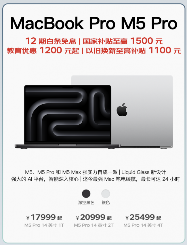 同期发布的2026款MacBook Pro则精准对标专业用户需求,搭载M5 Pro与M5 Max芯片,性能表现相比前代机型提升最高可达4倍、相比M1机型提升最高达8倍,赋能开发者、研发人员、专业商务人士和创意工作者直接在 MacBook Pro上解锁全新 AI 工作流。