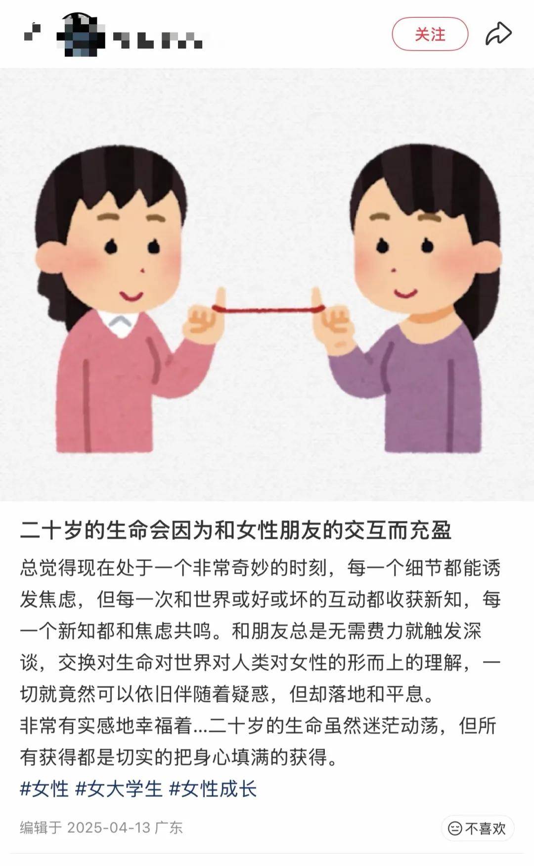 而当这种「相认」在现实里发生时,它会变成很多真实的托举:是在评论区里,有人分享自己的经验,让后来的人少走一点弯路;是职场里,是在你怀疑“是不是只有我这样”的时候,有人说一句:“我也经历过”;是生活中,你突然发现自己没带卫生巾,开口问了一句,身边的女生就会翻包帮你找……