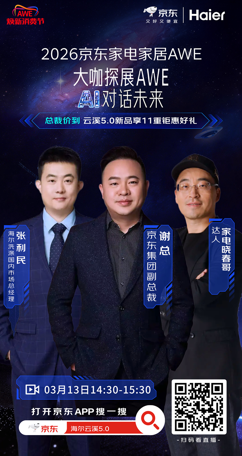 3月12日-15日,2026年中国家电及消费电子博览会(AWE 2026)将在上海盛大开幕。展会期间,京东将围绕家电家居消费场景推出系列直播活动。届时,京东将联动品牌高管、明星艺人及达人嘉宾,打造“总裁+明星”双矩阵直播模式,聚焦新品首发、AI趋势解读、互动福利等内容,带来多场直播,为消费者在AWE期间看新品、选家电、享福利提供更多元的选择。