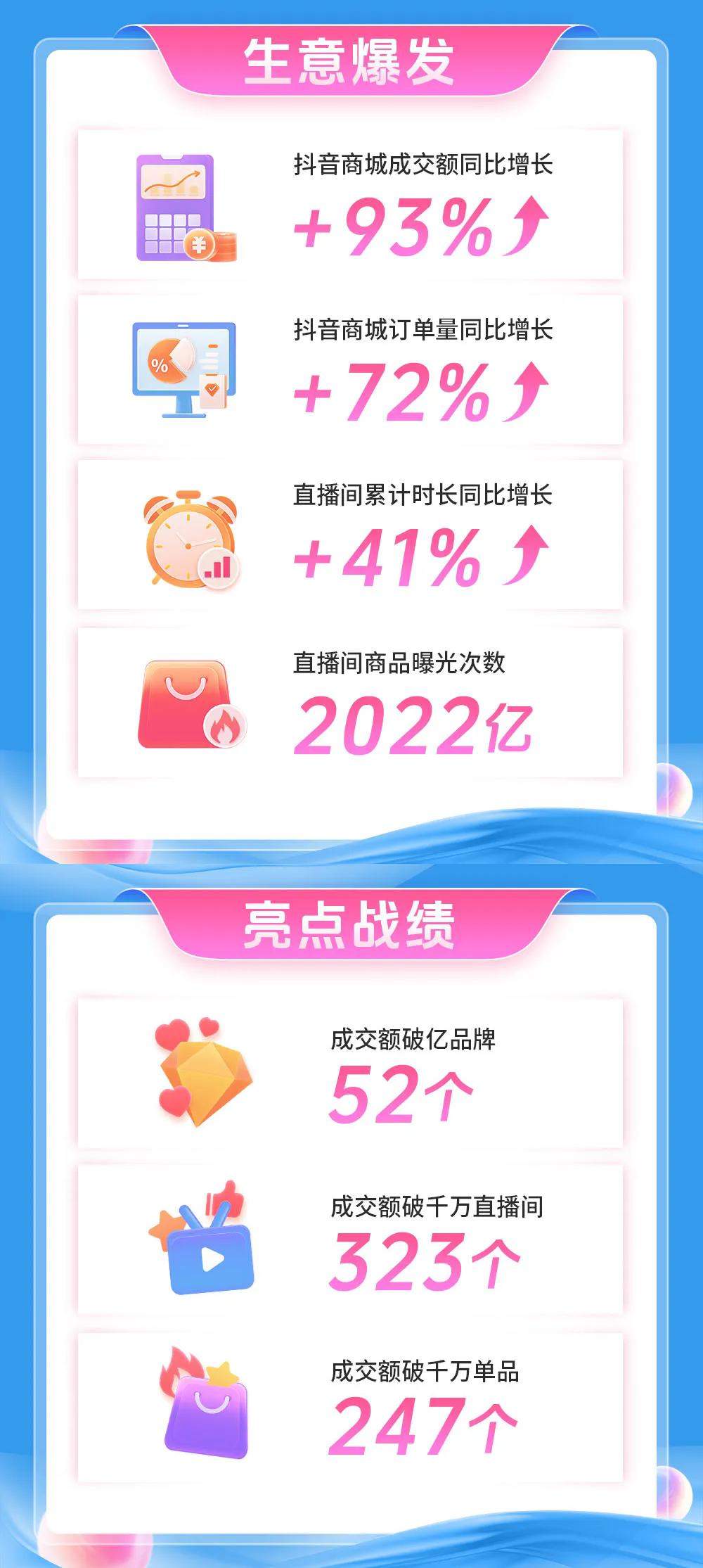 10月8日~10月17日,抖音电商双11抢先期成绩斐然,52个品牌成交额破亿,323个直播间成交额破...