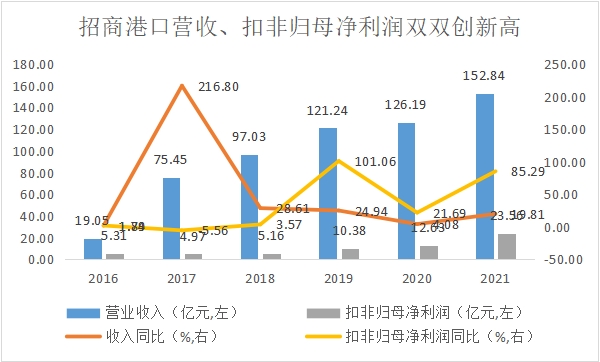 3月31日,招商港口发布2021年年度报告,2021年公司实现营业收入152.8亿元,同比增长19....